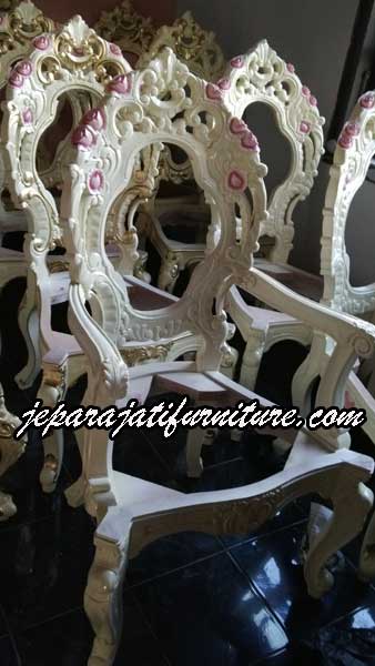 Kursi Makan Ukiran Mewah adalah produk dari jepara jati furniture dalam kategori meja makan mewah masuk dalam kategori meja makan italiyan furniture karenan menggunakan desain ukir italy.Kursi Makan Ukiran Mewah ini terbuat dari kayu mahoni berkualitas dan menggunakan cat finishing duco mobil sehingga kursi minerva ini mampu menembus tingkat ekspor dan shoroom mewah terutama di kota kota besar dan masuk sampe roma.Kursi Meja Makan Minerva Mewah ini merupakan asli produk jepara yang asli di buat oleh perajin ukir dari jepara seniman tua yang masih memperthankan ukiran khas jepara